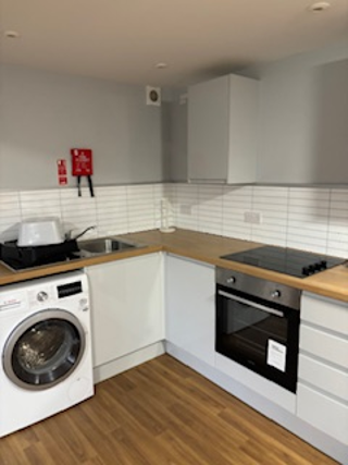 Washer/dryer, cooker, microwave, and fridge