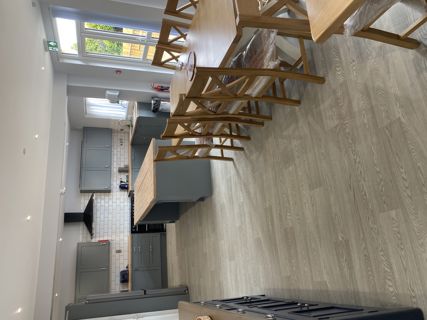 Open-plan kitchen and dining area to encourage shared meals and life skills